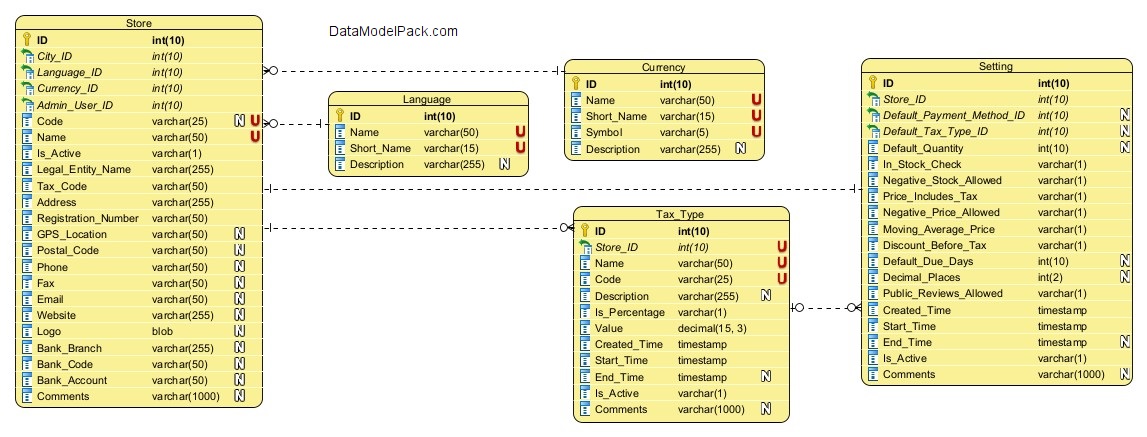 | Default_Tax_Type_ID | Lookup for the Default Tax Type assigned to Store. |
